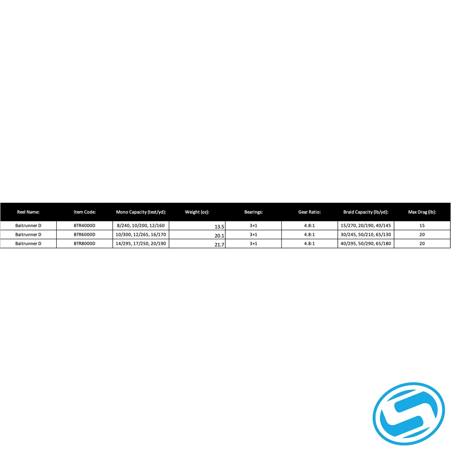 Available in multiple sizes, the Baitrunner D Spinning Reel caters to different fishing styles and preferences. Whether you're casting for bass in a local pond or chasing tuna in open seas, there's a model perfect for you. Each reel is meticulously designed to offer unmatched performance, helping you to enhance your skills and enjoy every moment spent on the water.